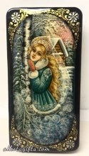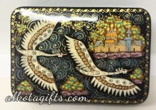 Russian authentic lacquer boxes painted by hand in Russian villages of Kholui, Fedoskino, Palech, Mstyora. Imported by Alkota