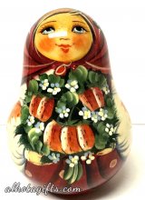 Russian Rolly-Polly, called in Russia Nevalyazhka, or Vanka-Vstanka is a popular Russian doll. Instead of different people, or nests inside witch can be opened in Matryoshka doll, Nevalyazhka has a bell inside and makes sound if you touch it or play with it. Russian nevalyashkas appeared in some parts of the European Russia in the beginning of the 20th century and quickly grew in popularity along with the rise of Matryoshka nesting dolls. The process of making a Russian Rolly-Polly involves making a blank out of wood, taking off the wood from the inside of the blank, putting a bell inside, glueing both parts (upper and lower) together and finally painting it. In the beginnning images portrayed on the Russian Bell, or charm doll were Russian village ladies in traditional Russian gowns. Later it became popular to paint different subject matter, including birds, animals. In between animals cats, as perhaps the most acclaimed house animal in the world and also in Russia, are the most popular on the Russian Rolly-Polly. The artistry of the Music dolls vary tremendously - from popular but inexpensive items to one-of-a-kind master pieces made and painted uniquely just once. Some of Russian Rolly-Polly Nevalyashka even include semi precious stones in the wood structure.
