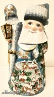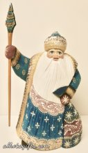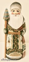 One of the most popuar and acclaimed Santas is the one who wears a long red or blue gown in flowers. That is how he(Santa) appeared in the first Russian folktales. With the time the variety of the clothes and how Santa was introduced individually grew up tremendously. Now you can find practically any color or coloration used to depict and paint the gown of Santa Claus. There are artists who use acrylic, others - water color. There are decorators, (very few indeed) who masterfully apply semi precious stones into the wood structure of the body of Russian Ded Moroz. Those pieces are rare and more valuable, because they require much more time to be made.