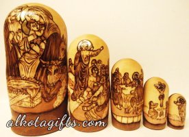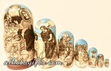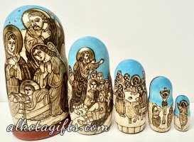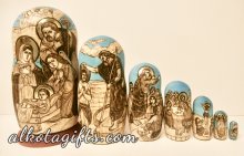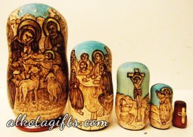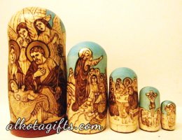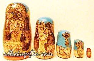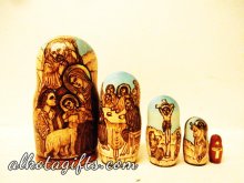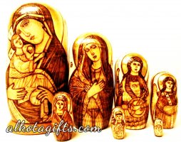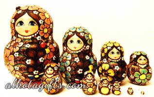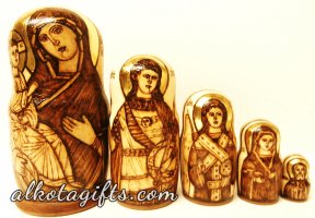 Russian nesting doll or "Matryoshka" doll, was called after a woman' s name "Matryona", which was very popular in Russia in 18th-19th centuries. One of the major reasons of its popularity was the root Matra in the word, which in old Russian means "Gender". After the nesting doll appeared as a toy it was dedicated to Matryona, who quickly began symbolizing Russian Woman, who worked hard in the household, catering the children and guests. Russian Matryoshka nesting doll soon became also a symbol of Russian family, Russian village, Russian Land.