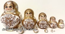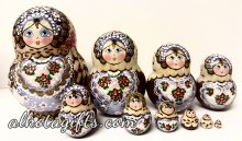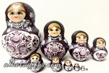 Russian nesting doll or "Matryoshka" doll, was called after a woman' s name "Matryona", which was very popular in Russia in 18th-19th centuries. One of the major reasons of its popularity was the root Matra in the word, which in old Russian means "Gender". After the nesting doll appeared as a toy it was dedicated to Matryona, who quickly began symbolizing Russian Woman, who worked hard in the household, catering the children and guests. Russian Matryoshka nesting doll soon became also a symbol of Russian family, Russian village, Russian Land.
