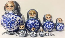 "Christmas Tradition in Blue", 7"H, ct19, Russian Wooden Nesting Doll