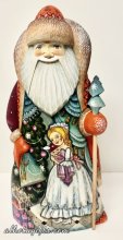 Collectible Russian wooden handcarved figurines of Santa Claus Ded Moroz with nutcracker. Painted in Russia by hand on basis of individual artist's design. Imported by Alkota Currently unavailable.