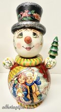 "Russian Snowman 2", 8"H, snm2, Russian Wooden Figurine