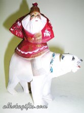 "Ded on the Polar Bear", 7"H, s177, Russian Wooden Collectible Santa