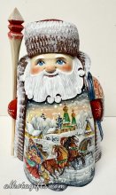 Since all three horses were pulling a sled (or a carriage) and were harnessed abreast, one horse in the center was trotting and two (on the sides) cantor, it allowed to develop much higher speed ( up to 40 miles an hour on the snow), than regular carriage with a horse. As a result the mail delivery considerably improved. Later troika became very popular and the most beloved means of transportation during festivities - weddings, celebrations, religious holidays. It became a warm and kind tradition to paint troika along with winter scenes on Russian Santas as a symbol of Russia and its rich history.