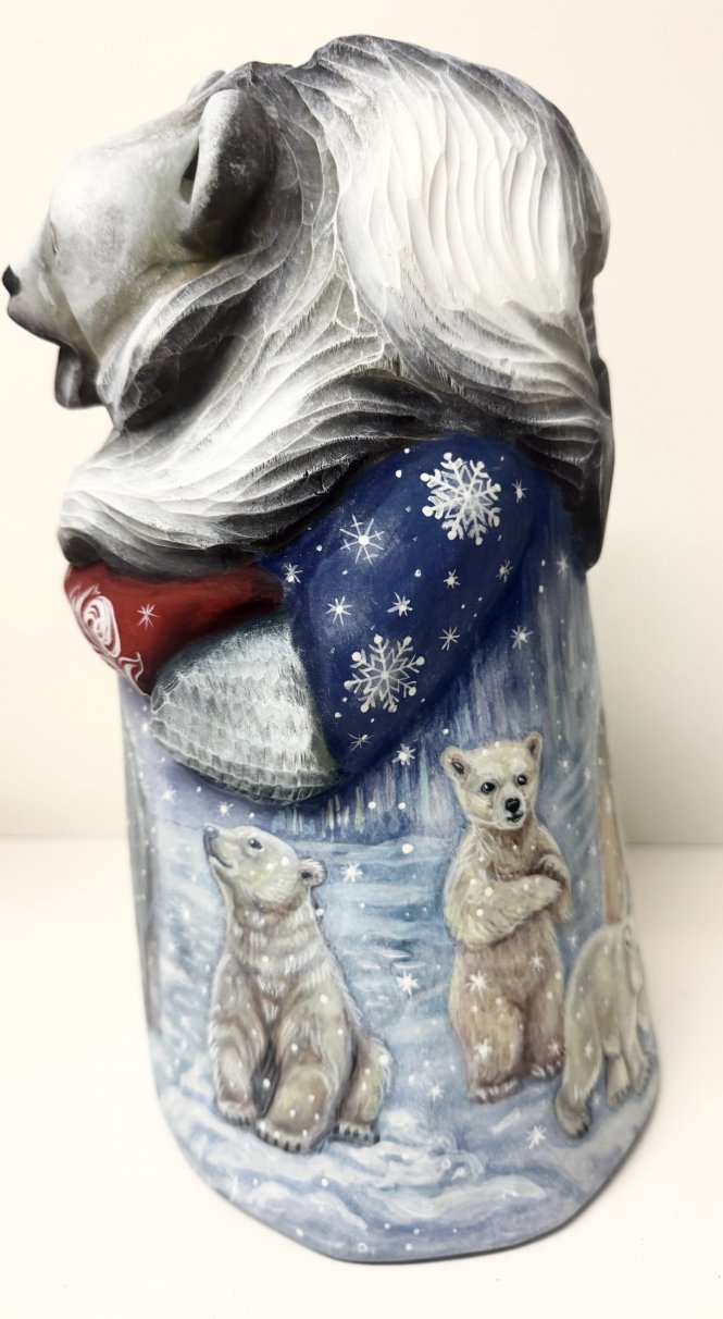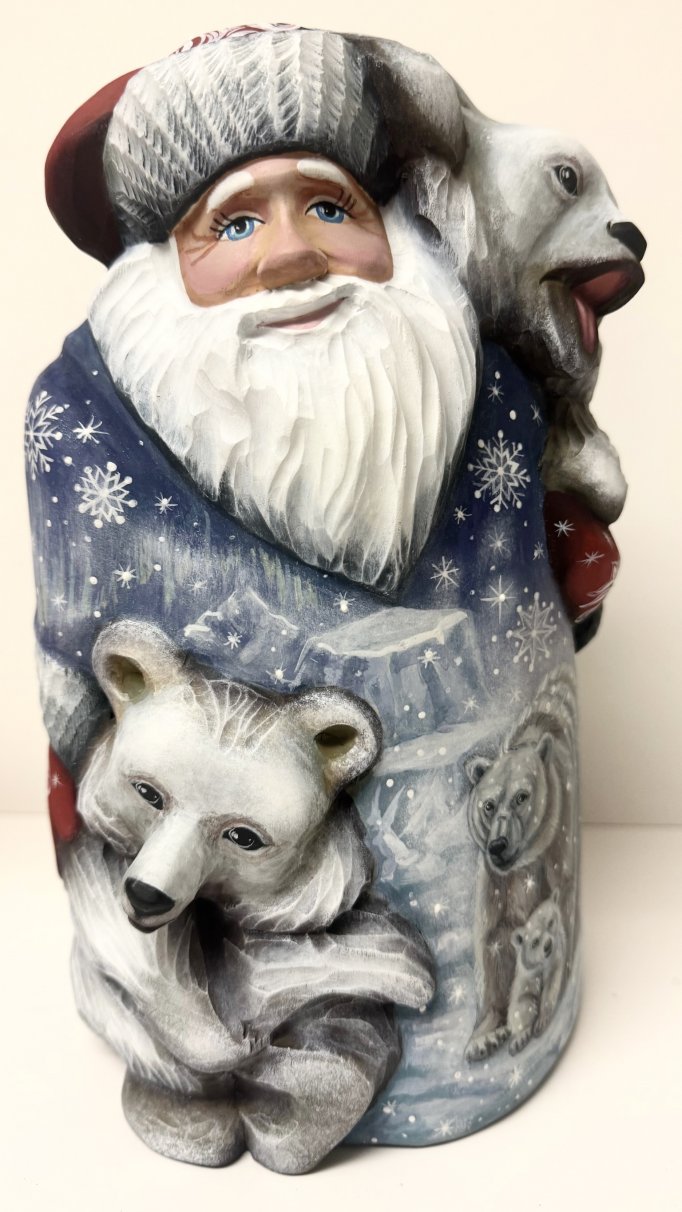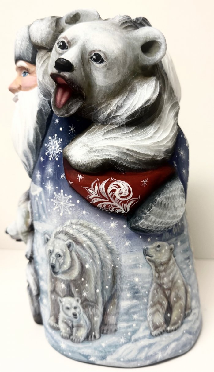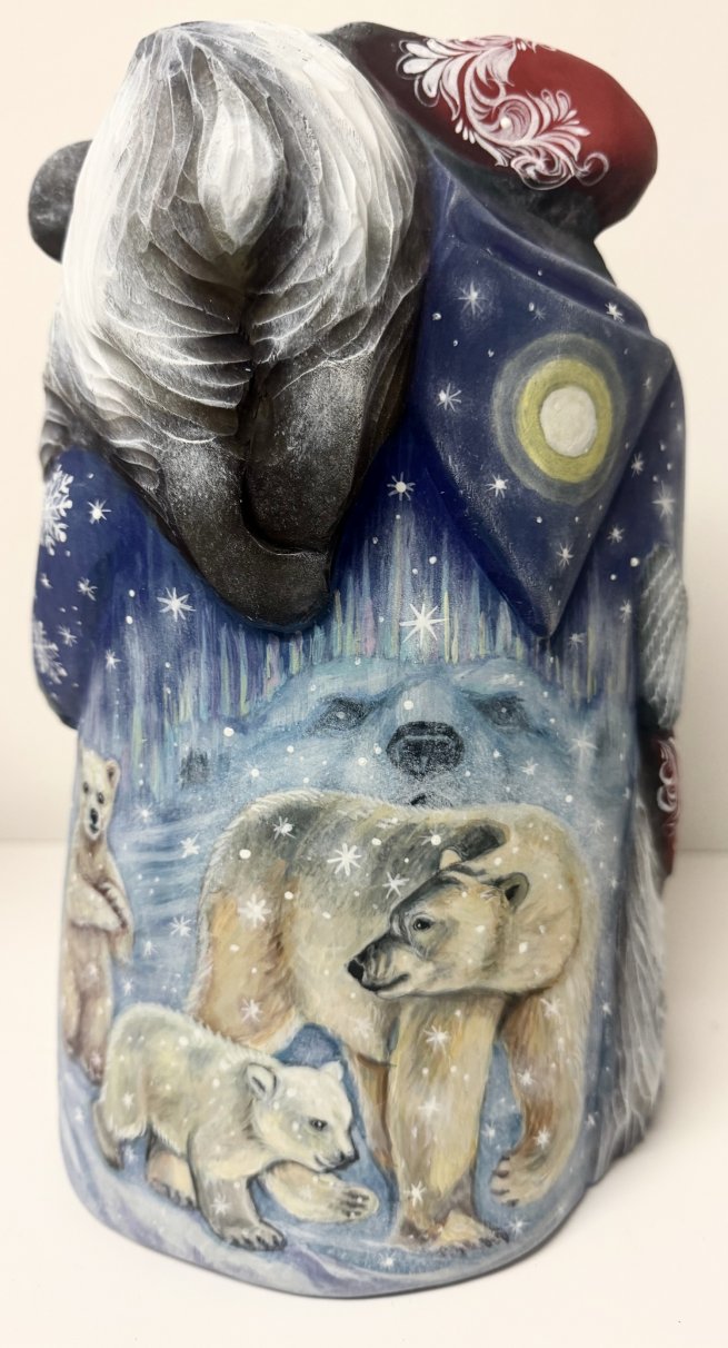 This Russian genuine Santa is uniquely handcrafted in Moscow, Russia: carved out of linden wood and painted with acrylic. 11"H x 6.5"W.