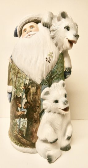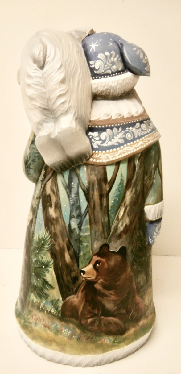 This Russian genuine Santa is uniquely handcrafted in Moscow, Russia: carved out of linden wood and painted with acrylic. 12"H x 6.5"W.