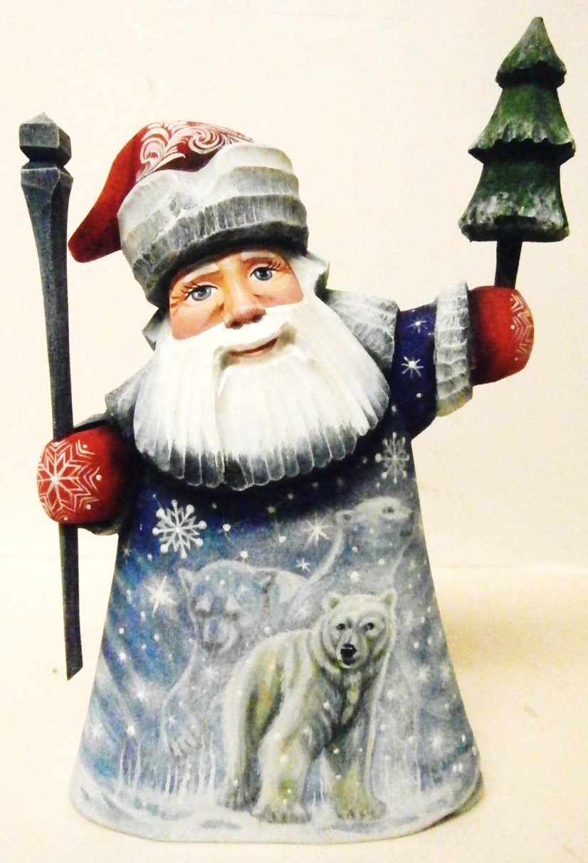 This Russian genuine Santa is handcrafted in Moscow, Russia: carved out of linden wood and painted with acrylic. Workshop "Russkiy Dom", Moscow, Russia.