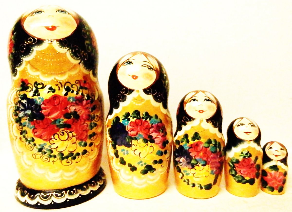 This nesting doll is crafted by hand: made out of linden wood and painted with acrylic. Workshop "Svetlana", Moscow, Russia.
