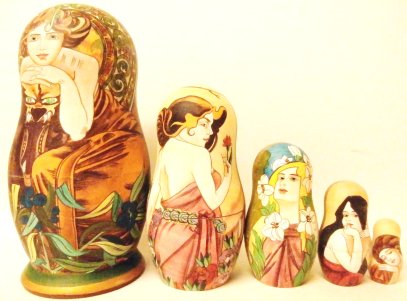 This nesting doll is handcrafted in Moscow, Russia: made out of linden wood and painted with acrylic. Workshop "Russkiy Dom", Moscow, Russia.