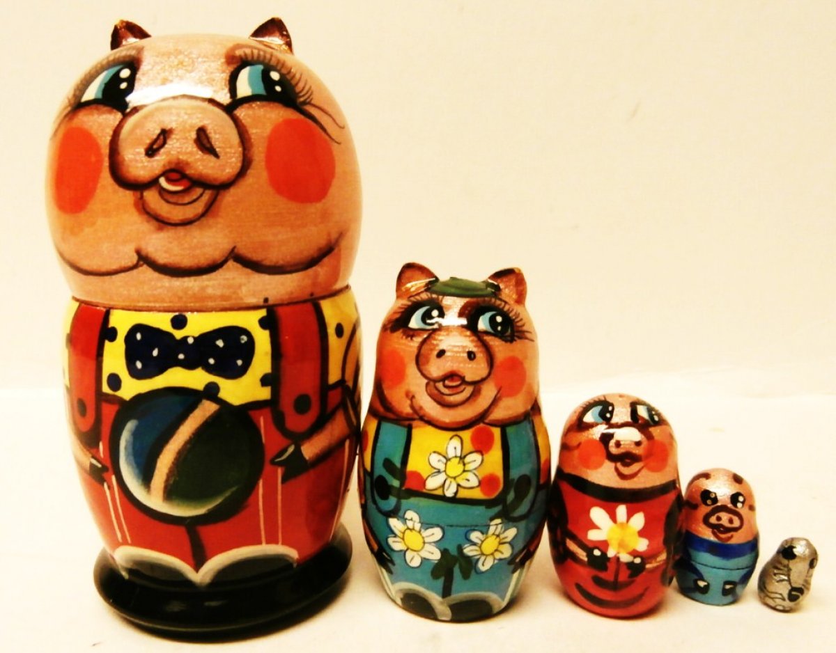 This nesting doll is crafted by hand: made out of linden wood and painted with acrylic. Workshop "Kvitok", Moscow, Russia.
