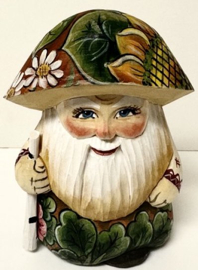This Santa is crafted by hand in Russia: carved from linden wood and painted with acrylic. Workshop "Viktor", 5"H