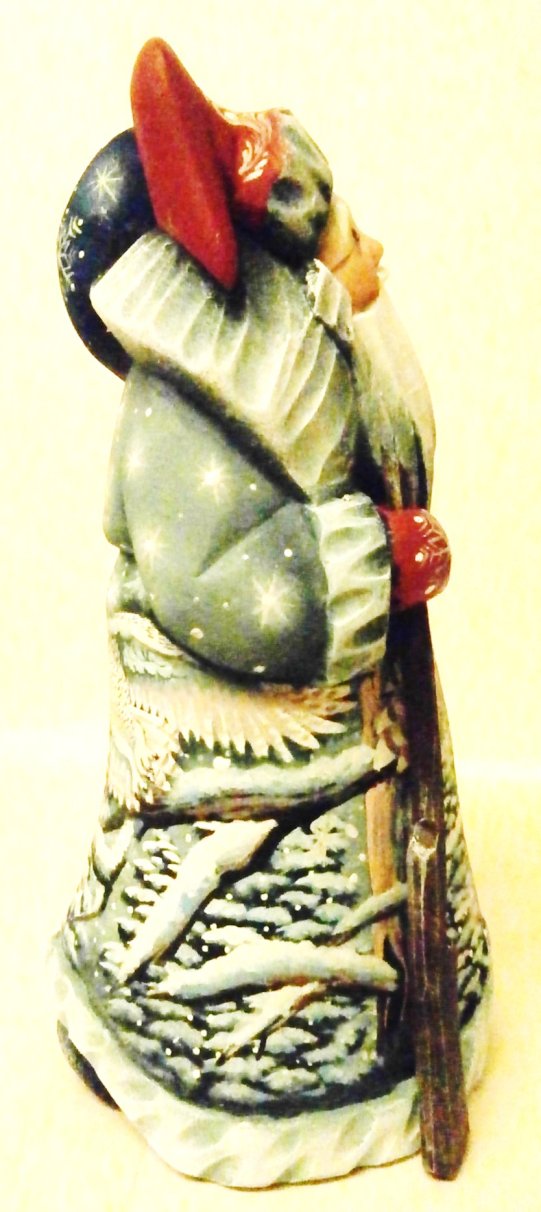 This Russian genuine Santa is handcrafted in Moscow, Russia: carved out of linden wood and painted with acrylic. Workshop "Russkiy Dom", Moscow, Russia.