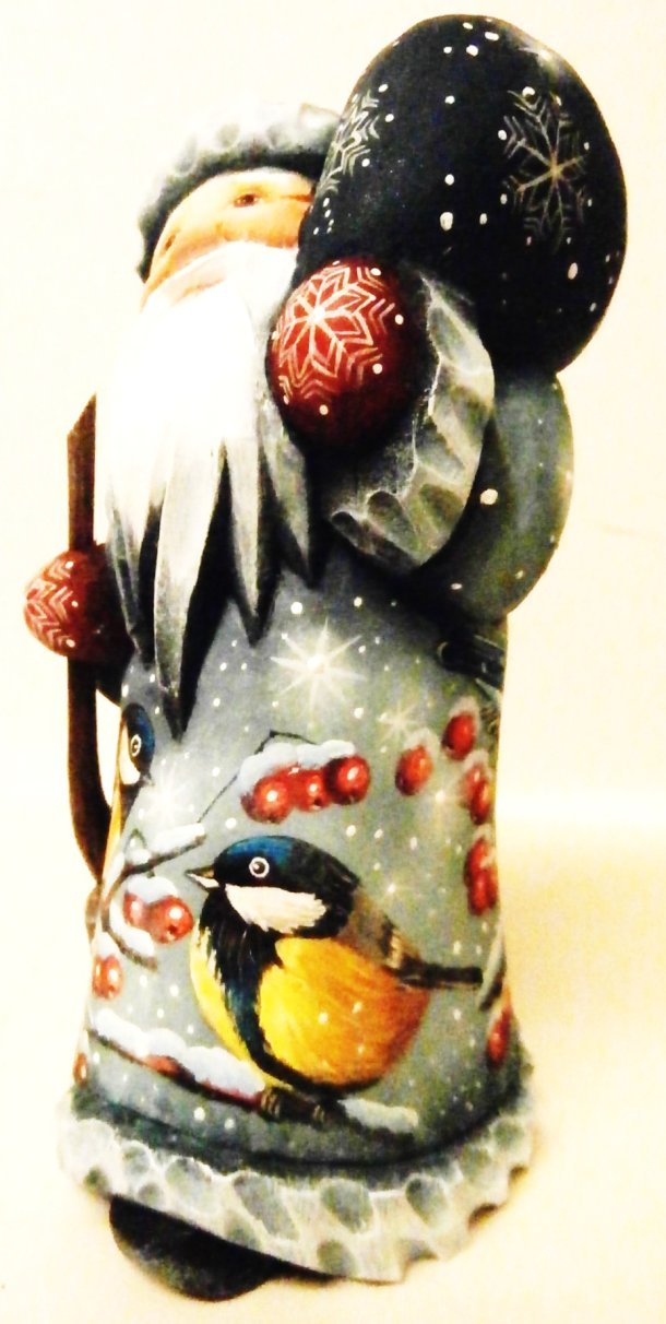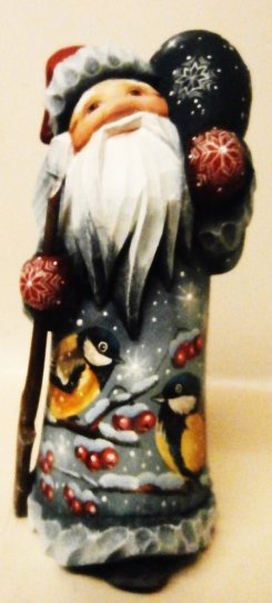 "Birds with Santa", 5"H sk115, Russian Wooden Santa