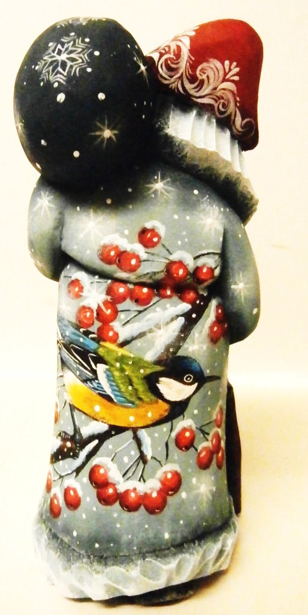 This Russian genuine Santa is handcrafted in Moscow, Russia: carved out of linden wood and painted with acrylic. Workshop "Russkiy Dom", Moscow, Russia.