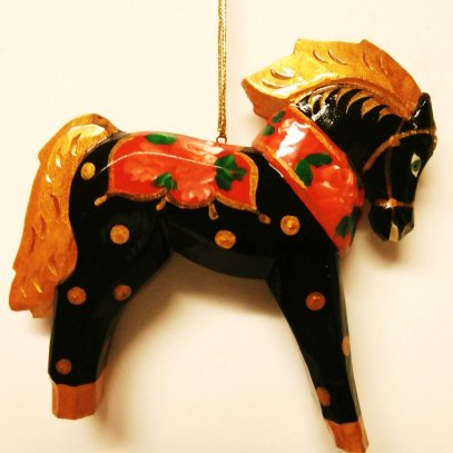 This Christmas ornament is crafted by hand: carved out of linden wood and painted with acrylic. Workshop "Skripkar", Moscow, Russia.