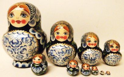 "Blue and White", 5.5"H, nd78, Russian Nesting Doll