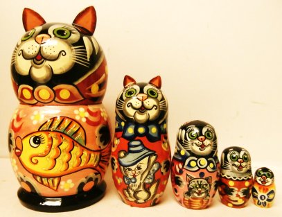 "Cat with Fish", 4"H, n36j, Russian Nesting Doll