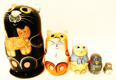 This nesting doll is crafted by hand: made out of linden wood and painted with acrylic. Workshop "Kvitok", Moscow, Russia.