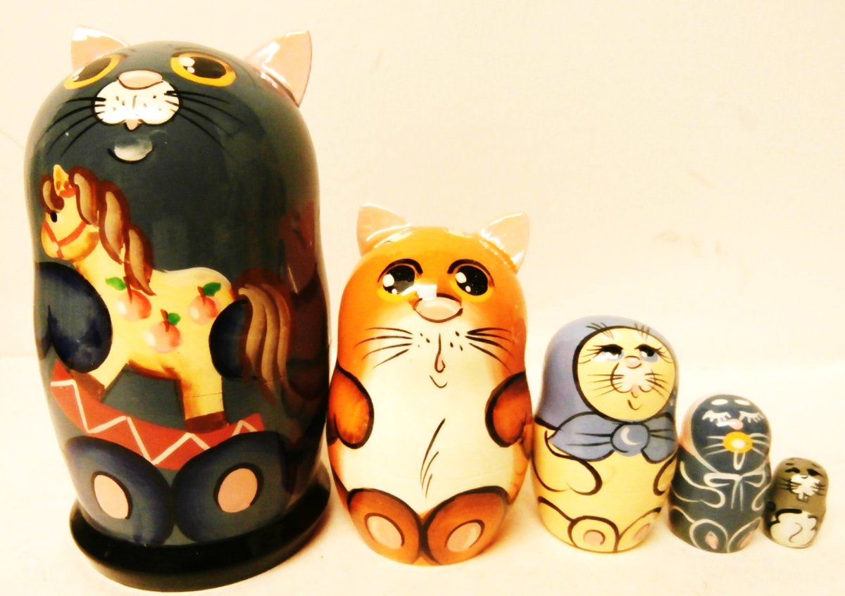 "Cats family", 3.5"H, n37e, Russian Nesting Doll