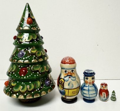 This wooden nesting doll is handcrafted in Moscow, Russia: made out of linden wood and painted with acrylic.