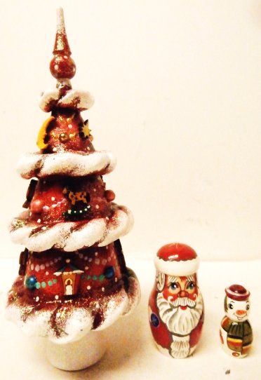 This work is crafted by hand: linden wood, acrylic. Every single Christmas ornament is carved by hand and glued to the tree. Workshop "V.Basharin", Moscow, Russia.