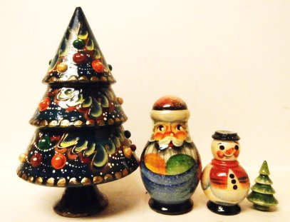 "Christmas Tradition in Blue", 7"H, ct19, Russian Wooden Nesting Doll