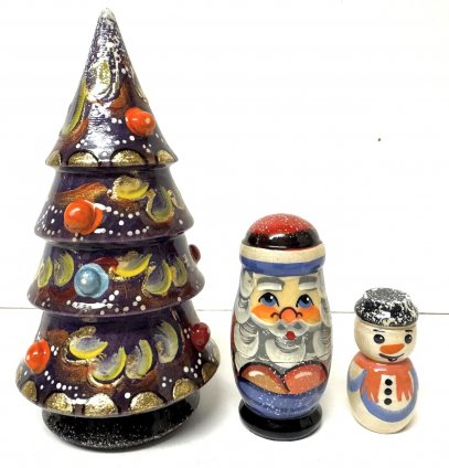 This wooden nesting doll is handcrafted in Moscow, Russia: made out of linden wood and painted with acrylic.