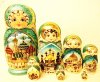 This nesting doll is handcrafted in Moscow, Russia: made out of linden wood and painted with acrylic. Workshop "Russkiy Dom", Moscow, Russia.