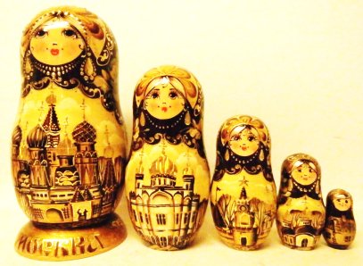 "Churches in Brown and Gold", 7"H, n500ab Russian Nesting Doll