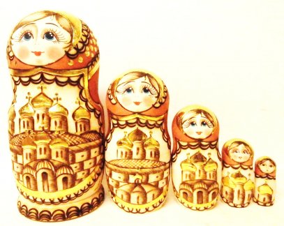 "Churches with Burning", 7"H, nd50a, Russian Nesting Doll