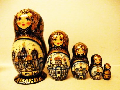 This Russian nesting doll is handcrafted in Moscow: made out of linden wood and painted with acrylic. Workshop "Russkiy Dom", Moscow, Russia.