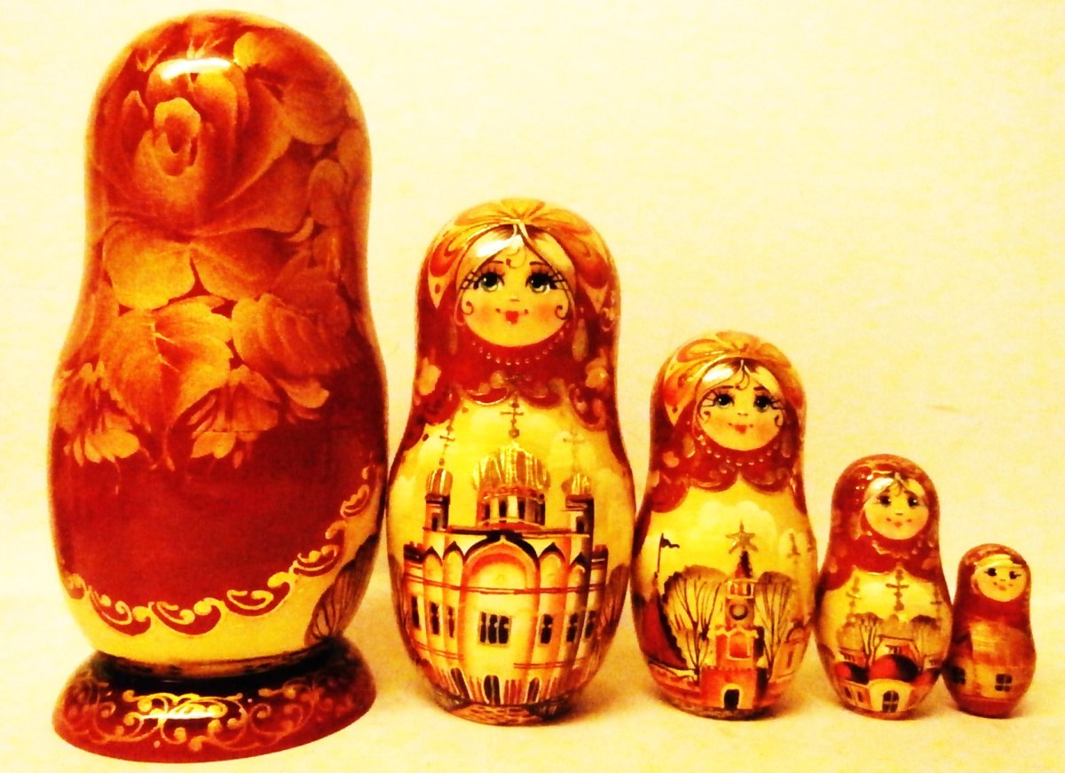 This Russian nesting doll is handcrafted in Moscow: made out of linden wood and painted with acrylic. Limited, Fine quality. Workshop "Russkiy Dom", Moscow, Russia.