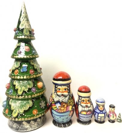 This work is crfted by hand: made out of linden wood and painted with acrylic. Workshop "Russkiy Dom", Moscow, Russia. 14"H