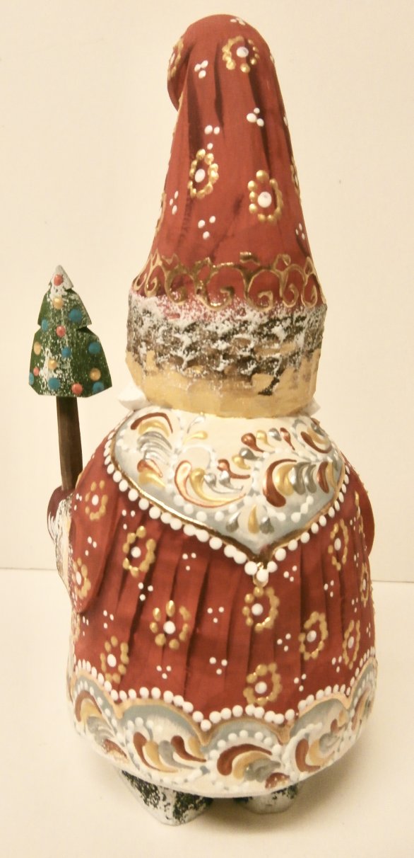 "Claus in Red Gown", 7”H, sc1a, Russian Wooden Santa