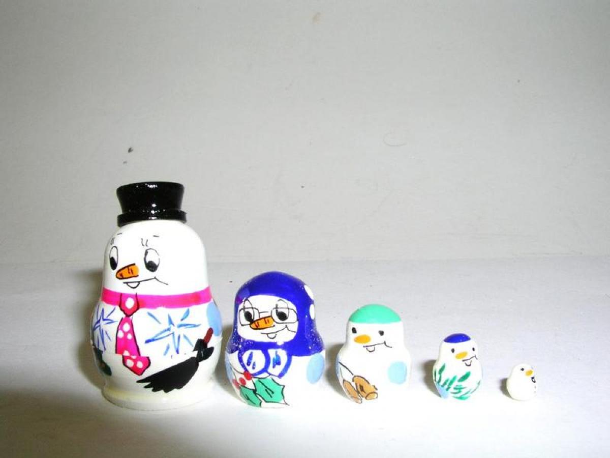 The workshop of L. Aleksandrovskiy. Painted with a family of funny snowmen. One of them is with broom and in the black hat.