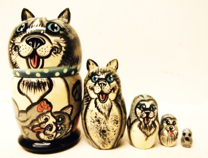 This nesting doll is crafted by hand: made out of linden wood and painted with acrylic. Workshop "Kvitok", Moscow.