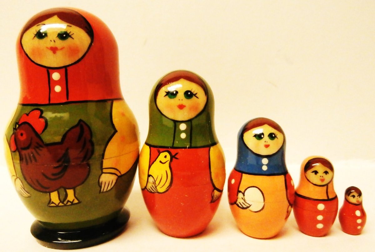 This nesting doll is crafted by hand: made out of linden wood and painted with acrylic. Moscow, Russia.