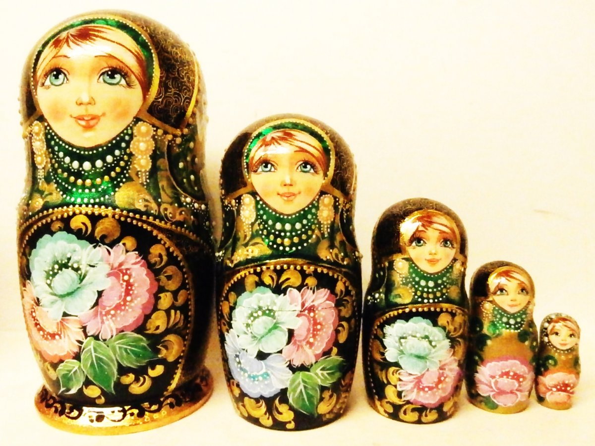 This nesting doll is crafted by hand: made out of linden wood and painted with acrylic. 7"H.