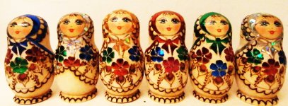 This nesting doll is handcrafted in Moscow, Russia: made out of linden wood and painted with acrylic. The subject matter is burned on wood. Workshop "Russkiy Dom", Moscow, Russia. It sells by six or 12.