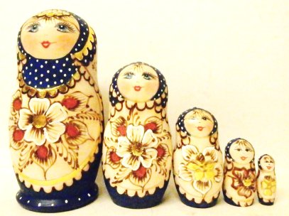This nesting doll is handcrafted in Moscow, Russia: made out of linden wood and painted with acrylic. Workshop "Russkiy Dom", Moscow, Russia.