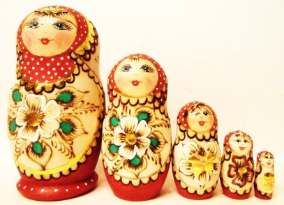 This nesting doll is handcrafted in Moscow, Russia: made out of linden wood and painted with acrylic. Workshop "Russkiy Dom", Moscow, Russia.
