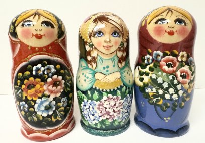 This nesting doll is handcrafted in Moscow, Russia: made out of linden wood and painted with acrylic. Workshop "Russkiy Dom", Moscow, Russia.