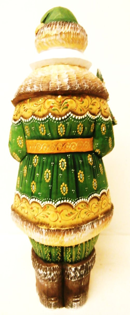 This Santa is handcrafted in the Russian city of Sergiyev Posad. It is carved from linden wood and painted with acrylic. Workshop "Viktor".