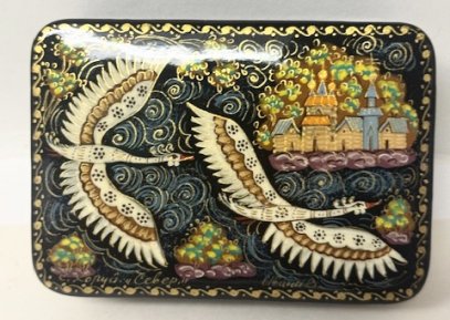 This lacquer box is original and genuine work. It is made and painted by hand. 2"W x 3.5"L