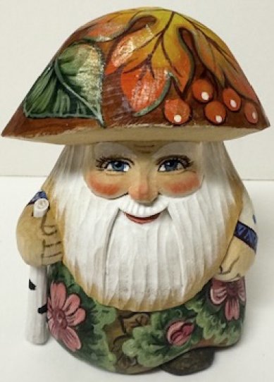 This Santa is crafted by hand in Russia: carved from linden wood and painted with acrylic. Workshop "Viktor", 5"H