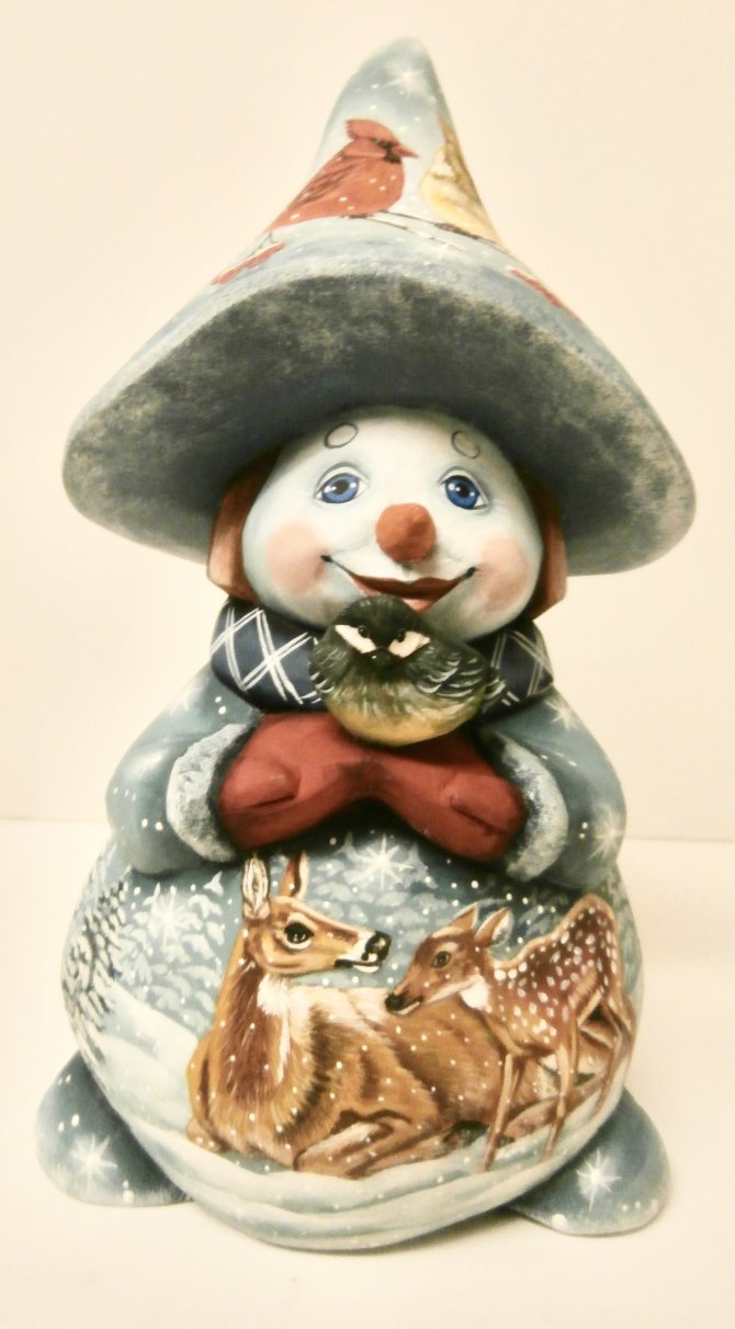 "Gennochka", 8"H, snm9, Russian Wooden Snowman Figurine
