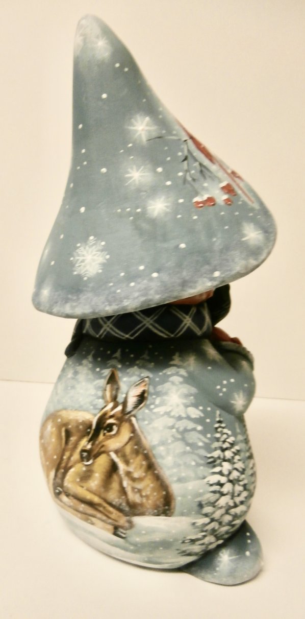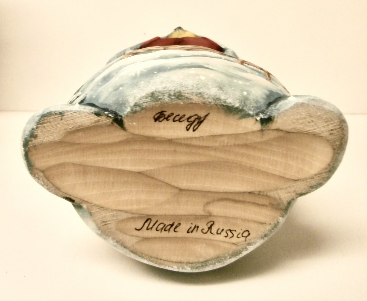 This work is crafted by hand in the workshop "Russkiy Dom", Moscow, Russia: carved out of linden wood and painted with acrylic. 8"H