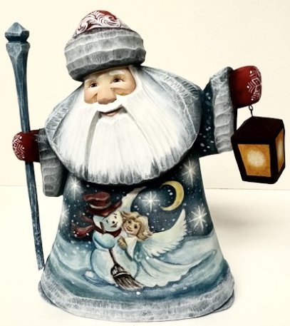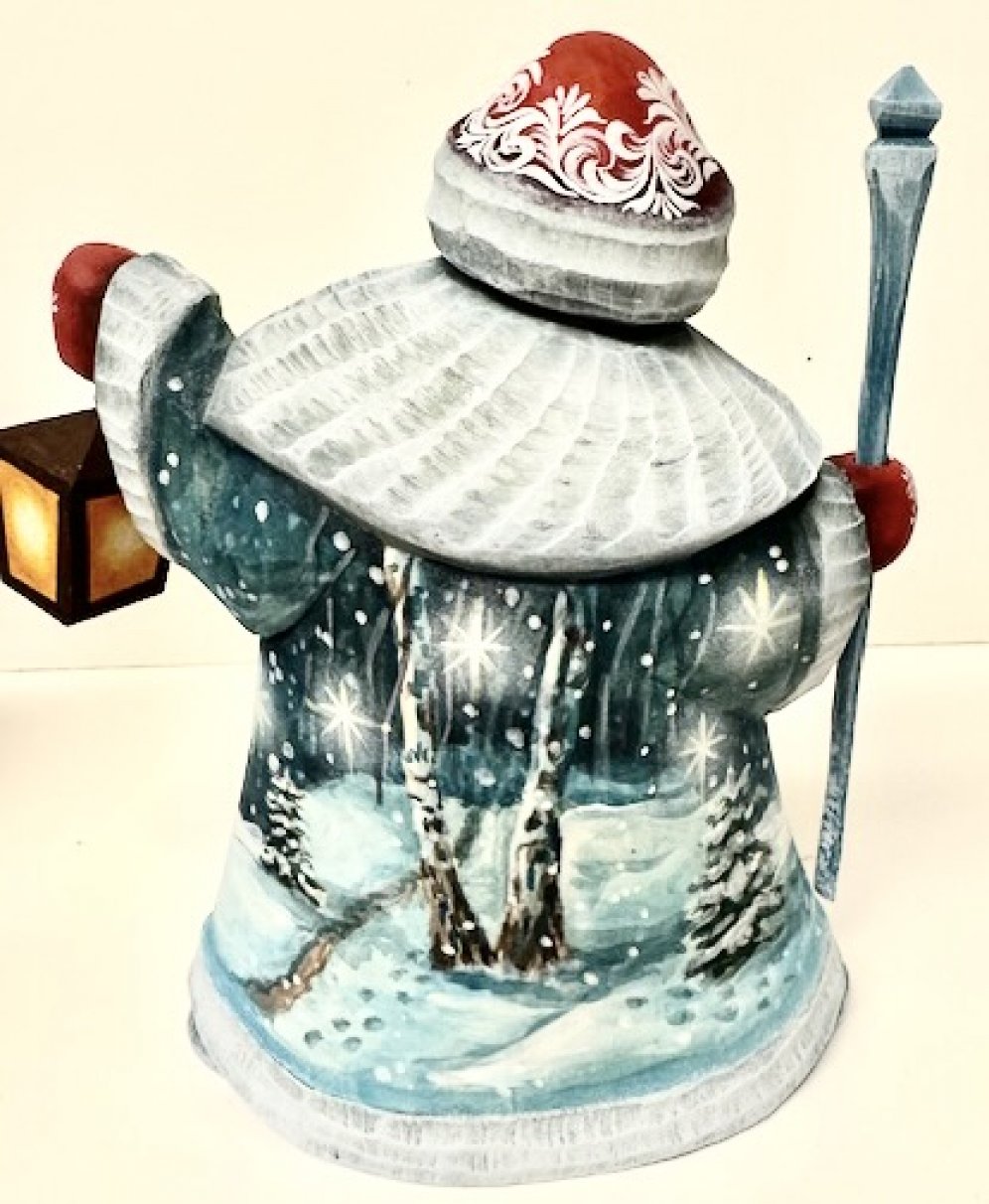 This Russian genuine Santa is handcrafted in Moscow, Russia: carved out of linden wood and painted with acrylic. Workshop "Russkiy Dom", Moscow, Russia.